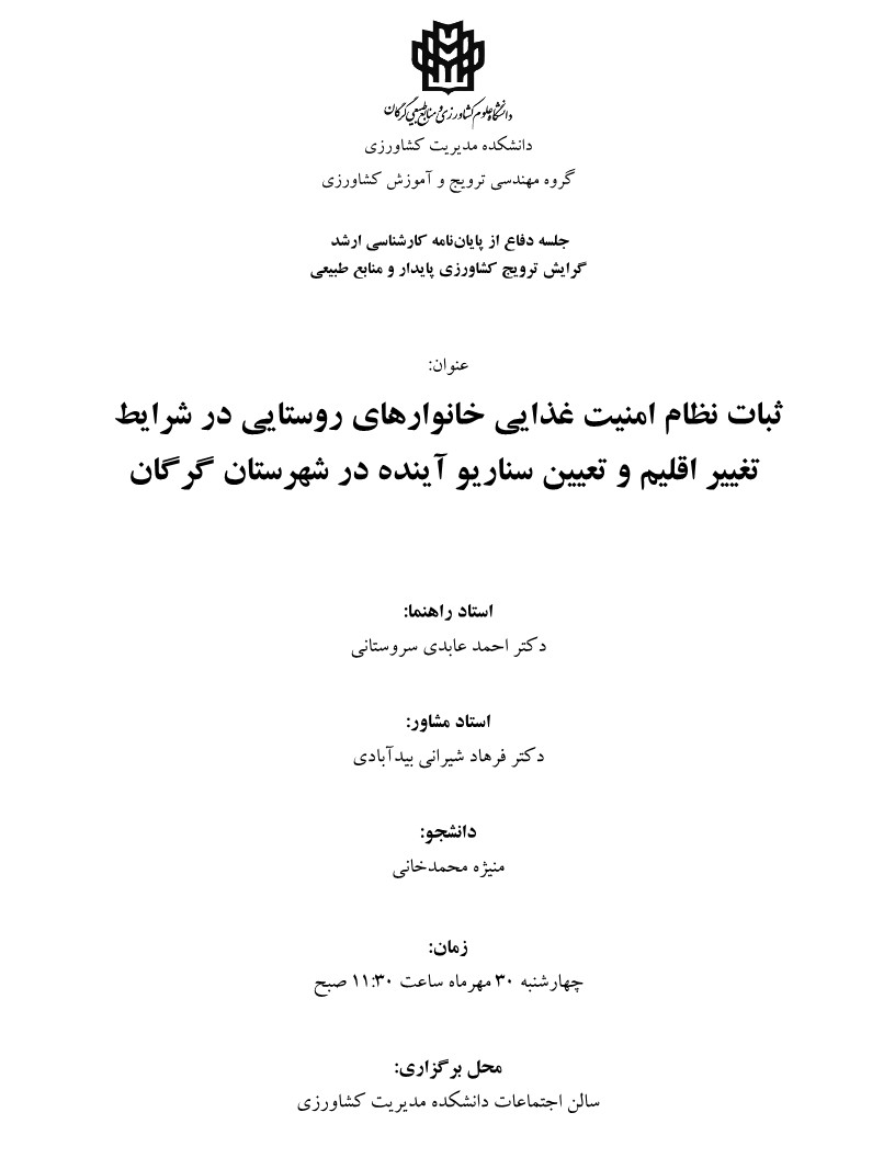 ثبات نظام امنیت غذایی خانوارهای روستایی در شرایط تغییر اقلیم و تعیین سناریو آینده در شهرستان گرگان